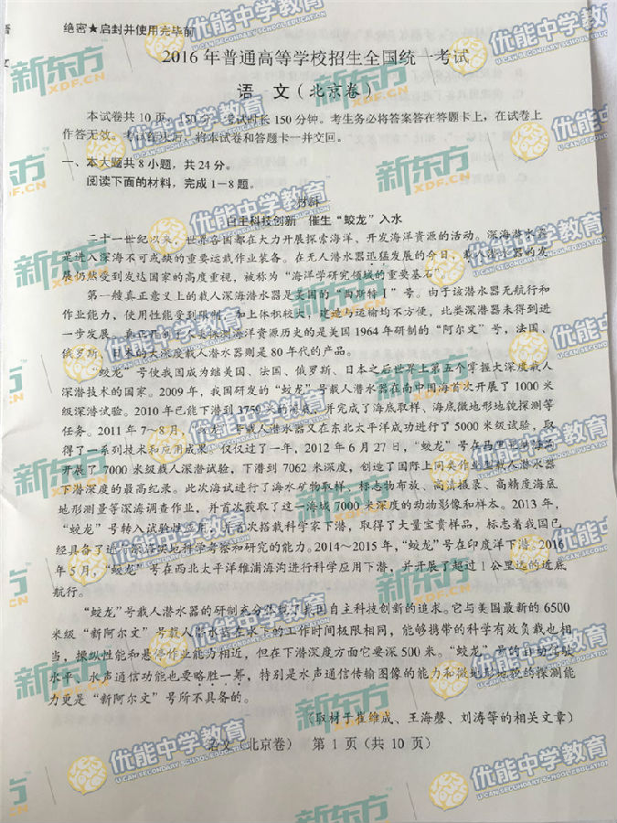 新东方在线高考网将于考后第一时间公布2016天津高考语文试题及答案,此外还将邀请新东方高考名师团队独家解析2016高考试题答案!帮助考生快速了解2016高考试题及答案最新信息!点击下载>>2...