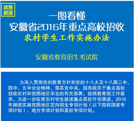 安徽2016年农村学生三大专项计划实施办法已经公布,新东方在线高考网为大家整理了安徽2016年农村学生国家专项计划实施地区名单,供大家参考。 点击查看:安徽2016年农村学生三大专项...
