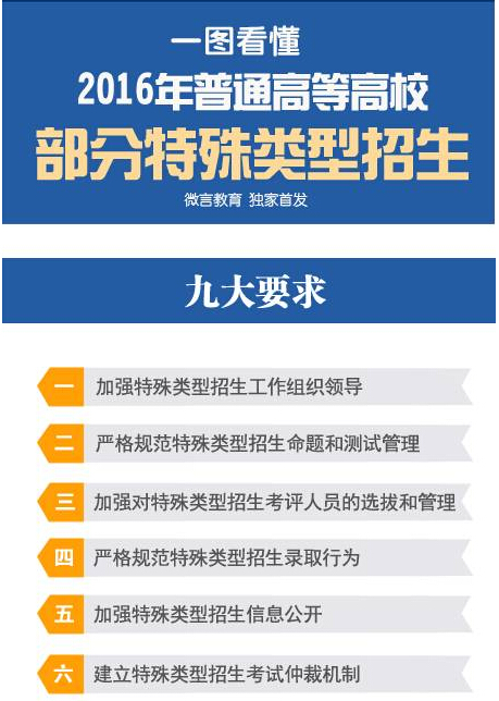 1月5日起,武汉大学2016年特殊类型招生开始网上报名,招生项目包括保送生、艺术类专业、高水平艺术团和高水平运动队。 保送生招收外语类保送生、竞赛类保送生、优秀运动员免试生3种类...
