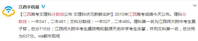 来源 : 网络 06月23日 11:38 关键字 : 江西2015高考分数线 江西高考分数线