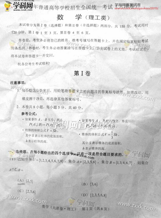 来源 : 网络 06月07日 17:42 关键字 : 2015高考答案 天津高考 天津高考理数试卷答案
