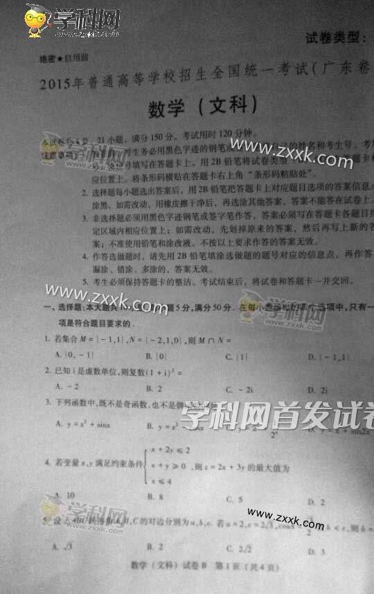 来源 : 网络 06月07日 17:03 关键字 : 2015高考答案 广东高考 广东高考文数试卷答案