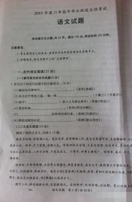 来源 : 网络 05月11日 17:00 关键字 : 2015厦门质检 2015厦门质检数学 数学答案