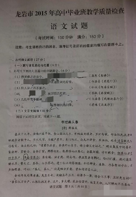 2015年龙岩质检考试已经结束,新东方在线高考网第一时间整理《2015龙岩质检试题及答案汇总》,供高考考生参考。2015龙岩质检紧扣高考大纲,不仅可以检验考生的复习情况,还能让考生从中...
