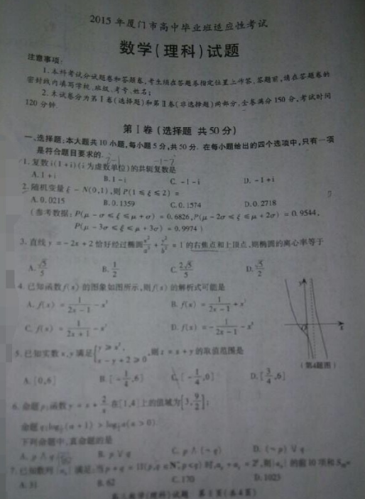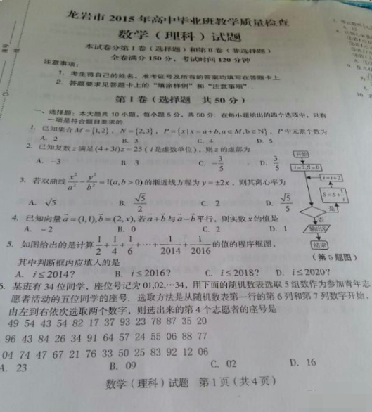 来源 : 网络 05月11日 17:00 关键字 : 2015龙岩质检 龙岩质检理科数学试题 数学答案