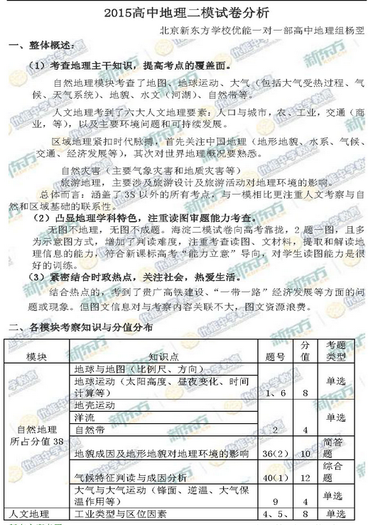 北京市海淀区2015届高三二模地理考试已经结束,新东方在线高考网特别整理《新东方名师解析2015海淀高三二模地理试题》,供高三考生参考。更多2015年北京高三二模试题及答案请关注新东方...