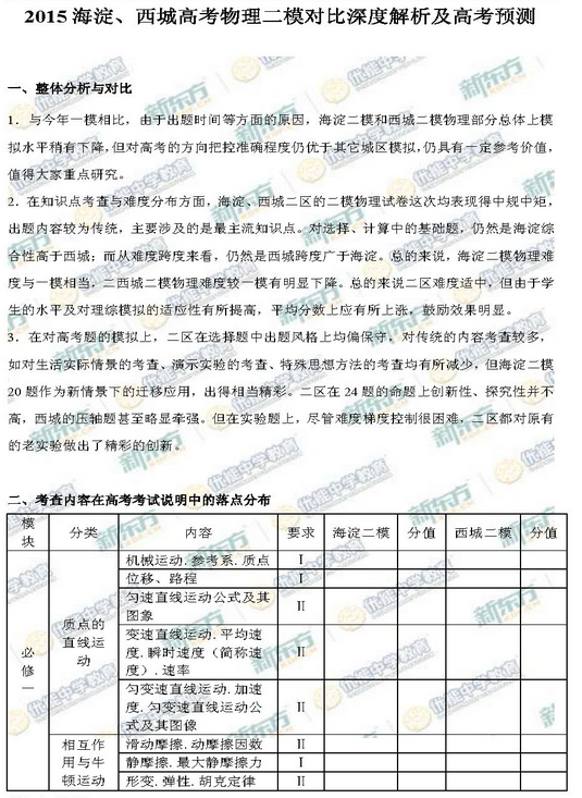 北京市海淀区2015届高三二模物理考试已经结束,新东方在线高考网特别整理《新东方名师解析2015海淀西城高三二模物理试题》,供高三考生参考。更多2015年北京高三二模试题及答案请关注新...