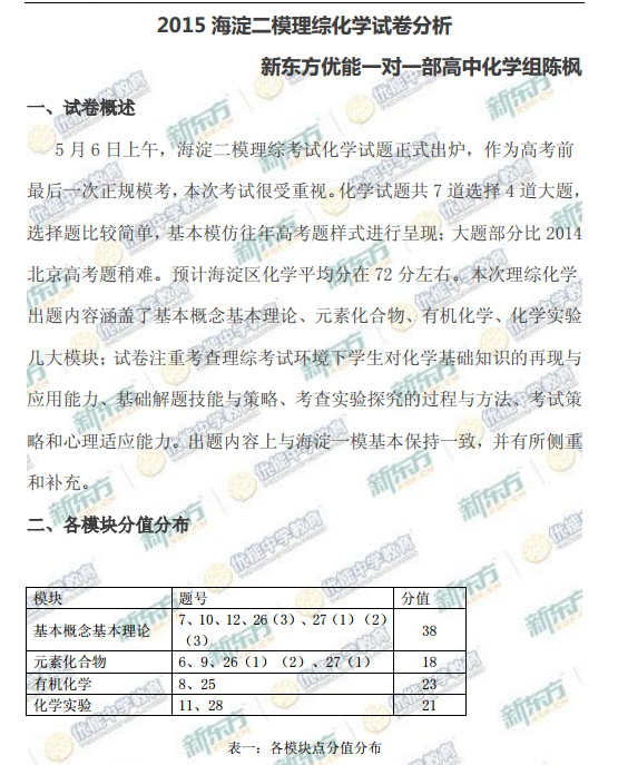 北京市海淀区2015届高三二模化学考试已经结束,新东方在线高考网特别整理《新东方名师解析2015海淀高三二模化学试题》,供高三考生参考。更多2015年北京高三二模试题及答案请关注新东方...
