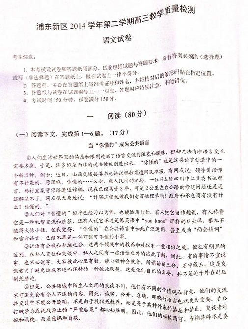 来源 : 网络 04月22日 17:10 关键字 : 2015上海高三二模 二模语文试题 语文答案