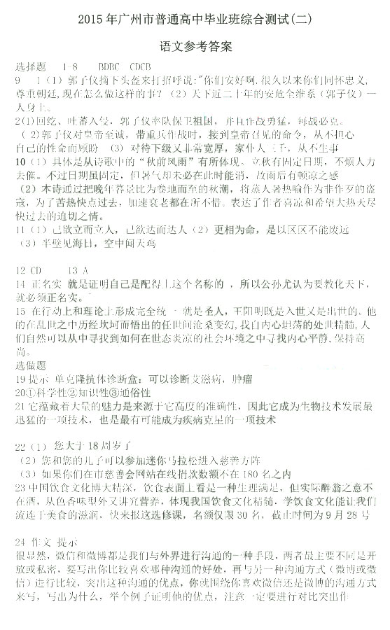 来源 : 网络 04月23日 10:32 关键字 : 2015广州二模答案 广州二模答案
