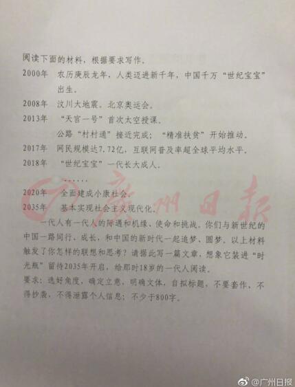 2018广东省高考作文正式公布,新东方在线高考网小编为考生们整理了2018广东省高考作文题目。 2018广东省高考作文题目 写给未来2035年的那个他以时间为检索 罗列从2000年到2018年的...
