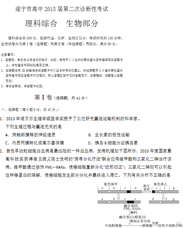 来源 : 网络 03月20日 11:27 关键字 : 2015遂宁二诊 遂宁二诊生物试题及答案