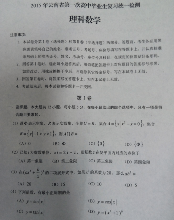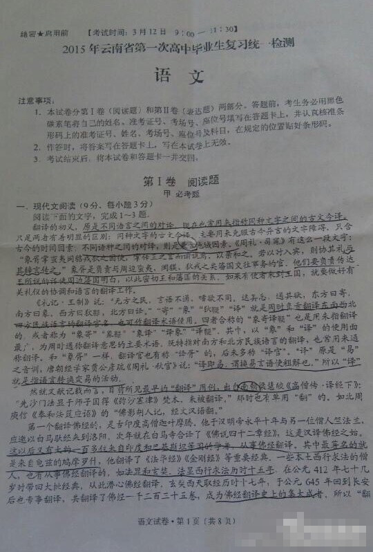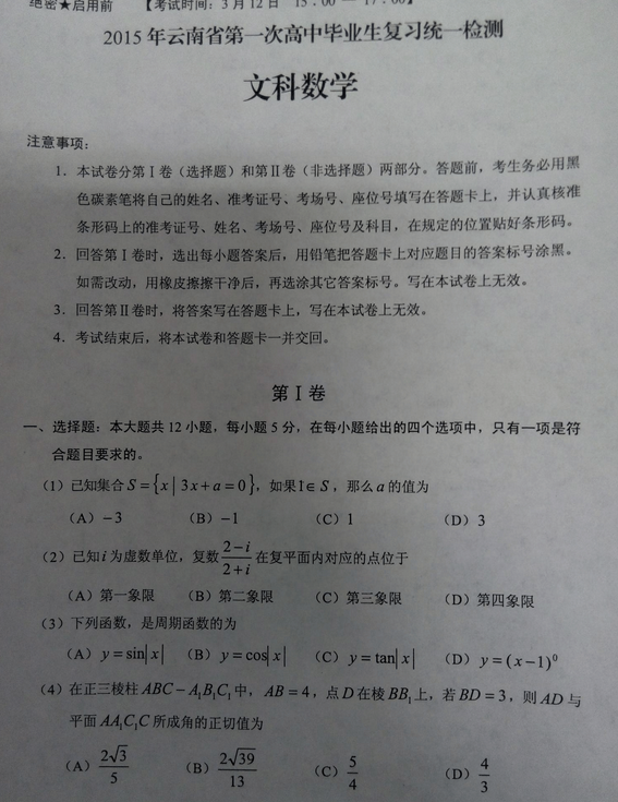 2015年云南省第一次统测考试已结束,新东方在线高考网小编整理了《2015年云南省第一次统测各科试题及答案汇总》,供同学们参考。2015年云南省第一次统测各科试题及答案汇总考试科目2015...