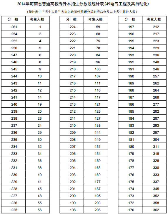 新东方在线讯 河南2014年高考录取分数线现已公布,新东方在线高考网第一时间整理《河南2014年高考专升本成绩分段表统计表(电气工程及其自动化)》,供河南高考考生查询。 河南2014年...