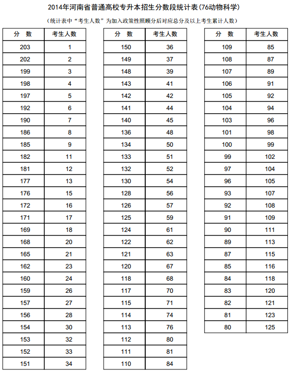 新东方在线讯 河南2014年高考录取分数线现已公布,新东方在线高考网第一时间整理《河南2014年高考专升本成绩分段表统计表(动物科学)》,供河南高考考生查询。 河南2014年高考专升本...