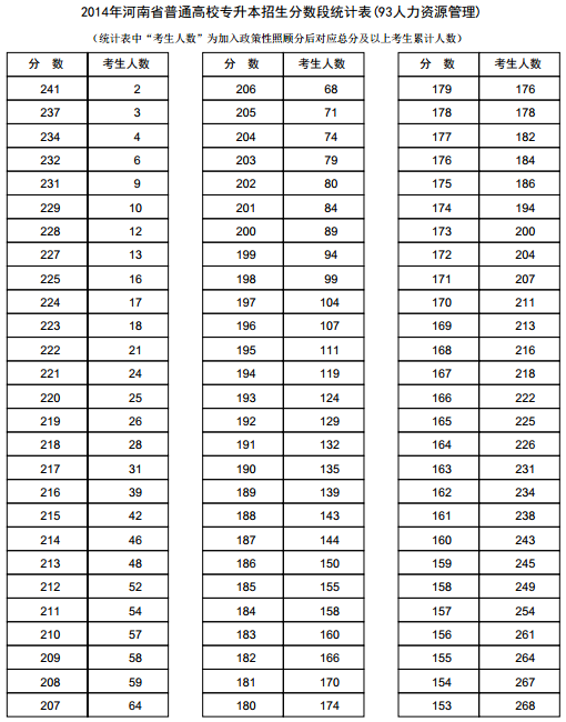 新东方在线讯 河南2014年高考录取分数线现已公布,新东方在线高考网第一时间整理《河南2014年高考专升本成绩分段表统计表(人力资源管理)》,供河南高考考生查询。 河南2014年高考专...