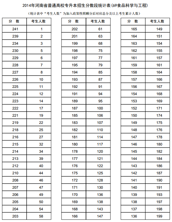 新东方在线讯 河南2014年高考录取分数线现已公布,新东方在线高考网第一时间整理《河南2014年高考专升本成绩分段表统计表(食品科学与工程)》,供河南高考考生查询。 河南2014年高考...