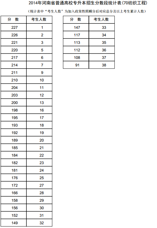 新东方在线讯 河南2014年高考录取分数线现已公布,新东方在线高考网第一时间整理《河南2014年高考专升本成绩分段表统计表(纺织工程)》,供河南高考考生查询。 河南2014年高考专升本...