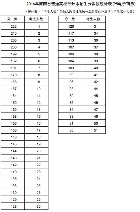 新东方在线讯 河南2014年高考录取分数线现已公布,新东方在线高考网第一时间整理《河南2014年高考专升本成绩分段表统计表(电子商务)》,供河南高考考生查询。 河南2014年高考专升本...