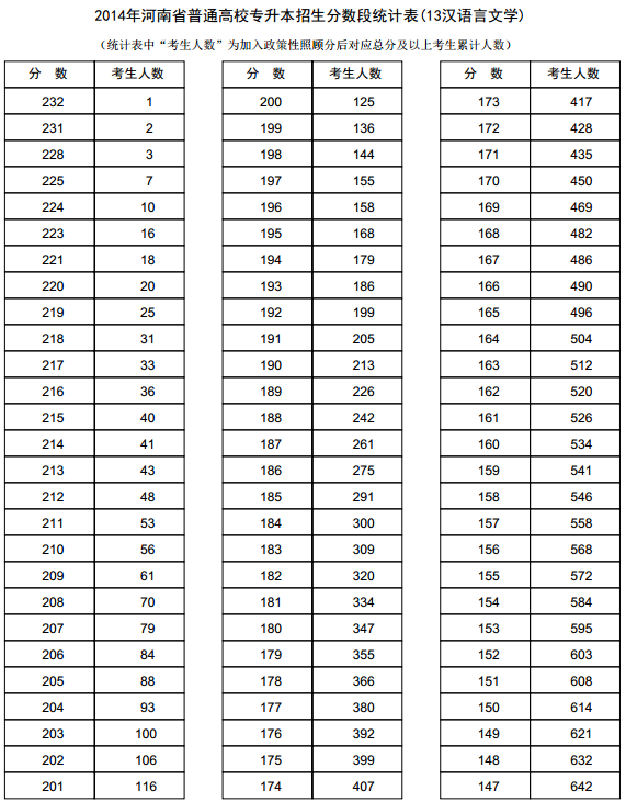 新东方在线讯 河南2014年高考录取分数线现已公布,新东方在线高考网第一时间整理《河南2014年高考专升本成绩分段表统计表(汉语言文学)》,供河南高考考生查询。 河南2014年高考专升...