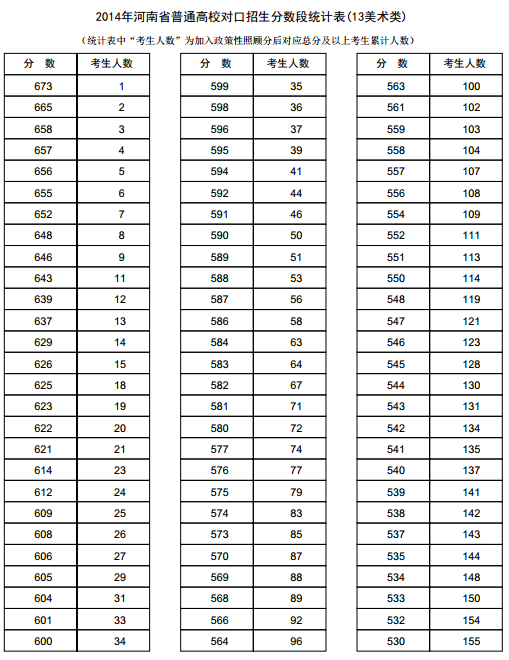 新东方在线讯 河南2014年高考录取分数线现已公布,新东方在线高考网第一时间整理《河南2014年高考成绩分段表统计表(美术类)》,供河南高考考生查询。 河南2014年高考成绩分段表统计...