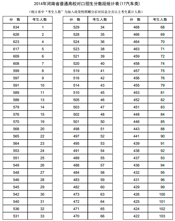 新东方在线讯 河南2014年高考录取分数线现已公布,新东方在线高考网第一时间整理《河南2014年高考成绩分段表统计表(汽车类)》,供河南高考考生查询。 河南2014年高考成绩分段表统计...