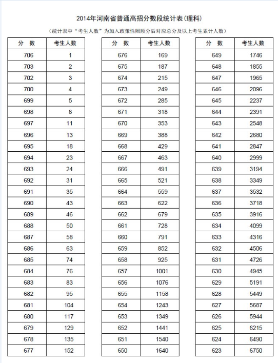 新东方在线讯 河南2014年高考录取分数线现已公布,新东方在线高考网第一时间整理《河南2014年高考成绩分段表统计表(理科)》,供河南高考考生查询。 河南2014年...