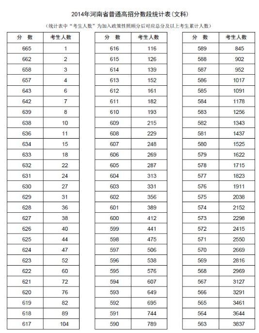 新东方在线讯 河南2014年高考录取分数线现已公布,新东方在线高考网第一时间整理《河南2014年高考成绩分段表统计表(文科)》,供河南高考考生查询。 河南2014年高考成绩分段表统计表(...