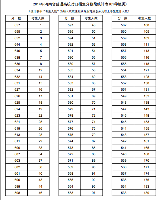 新东方在线讯 河南2014年高考录取分数线现已公布,新东方在线高考网第一时间整理《河南2014年高考成绩分段表统计表(种植类)》,供河南高考考生查询。 河南2014年高考成绩分段表统计...