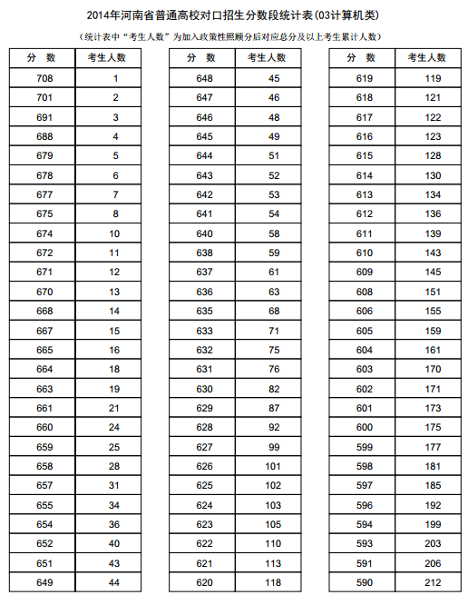 新东方在线讯 河南2014年高考录取分数线现已公布,新东方在线高考网第一时间整理《河南2014年高考成绩分段表统计表(计算机类)》,供河南高考考生查询。 河南2014年高考成绩分段表统...