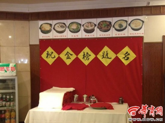 7日上午,华商网小编在26中考点看到,一家位于学校对面的餐馆在门头上挂出“中高考营养套餐预订中”的条幅。餐馆的负责人介绍,推出套餐便于考生和家长在早上考完试后就餐和休息,准备下...