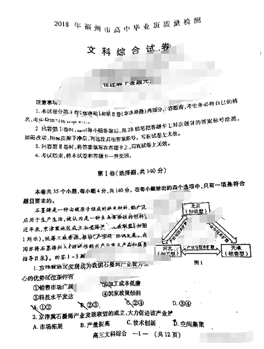 2018福州高三质检于2018年3月6日-3月7日开考,为方便考生们考后复习,新东方在线高考网小编将2018福州高三质检文综试题及答案整理如下,供参考。点击下载>>2018高考模拟试题及答案点击查...