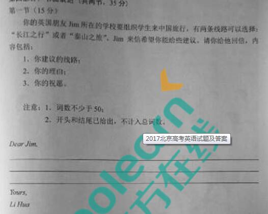 2017北京高考英语作文将在高考英语考试结束后正式公布,新东方在线高考网将第一时间整理并发布2017北京高考英语作文及2017高考英语作文相关信息,帮助大家快速获取高考英语作文内容!此...