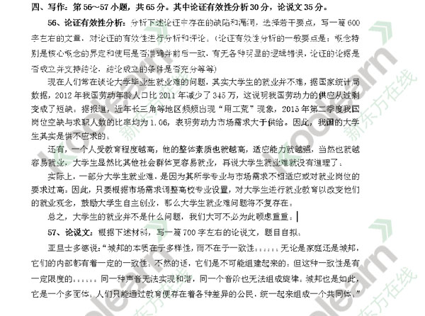 新东方在线考研频道考后第一时间发布2016考研管理类联考写作试题,新东方名师也将对试题答案进行深度解析,帮助大家估分、为后续复试调剂做好准备。更多2016年考研英语试题及答案、考研...