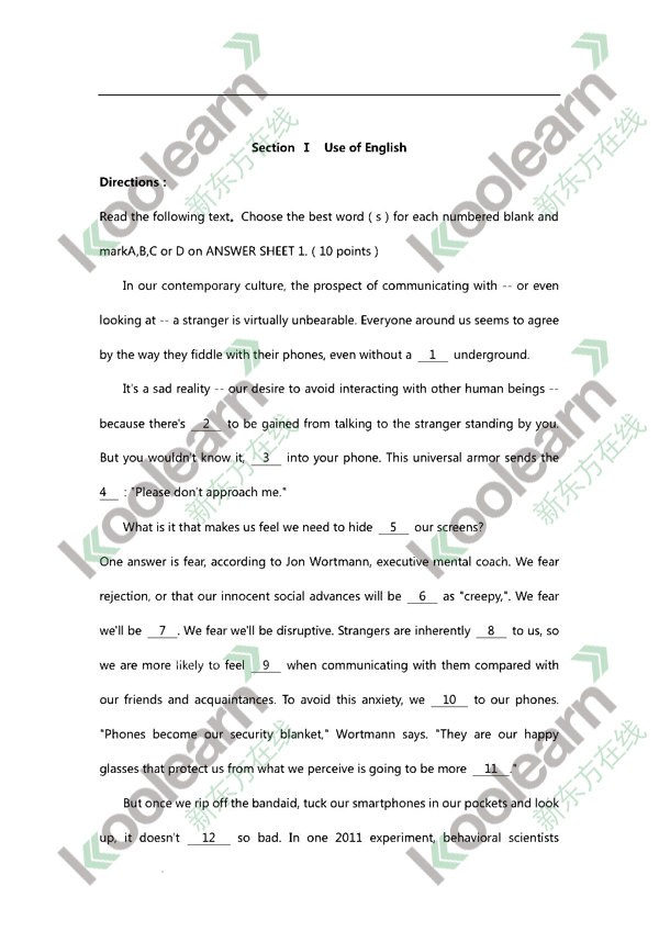 来源 : 网络 12月29日 14:52 关键字 : 2015考研英语一完型填空答案