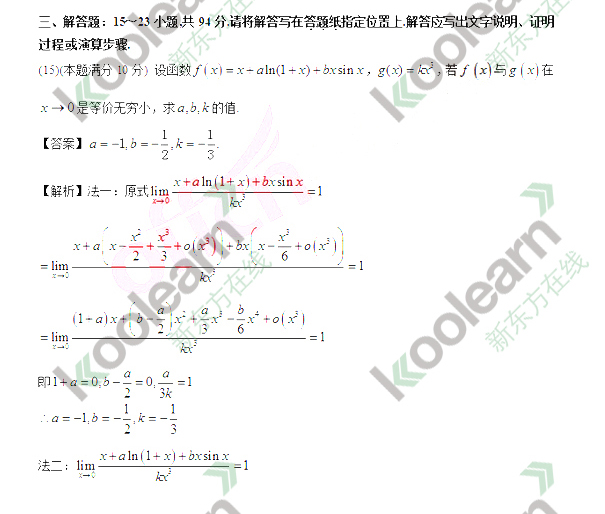 来源 : 网络 12月29日 10:10 关键字 : 2015考研数学真题及答案