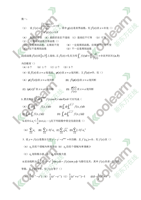来源 : 网络 12月28日 17:43 关键字 : 2015考研数学真题及答案