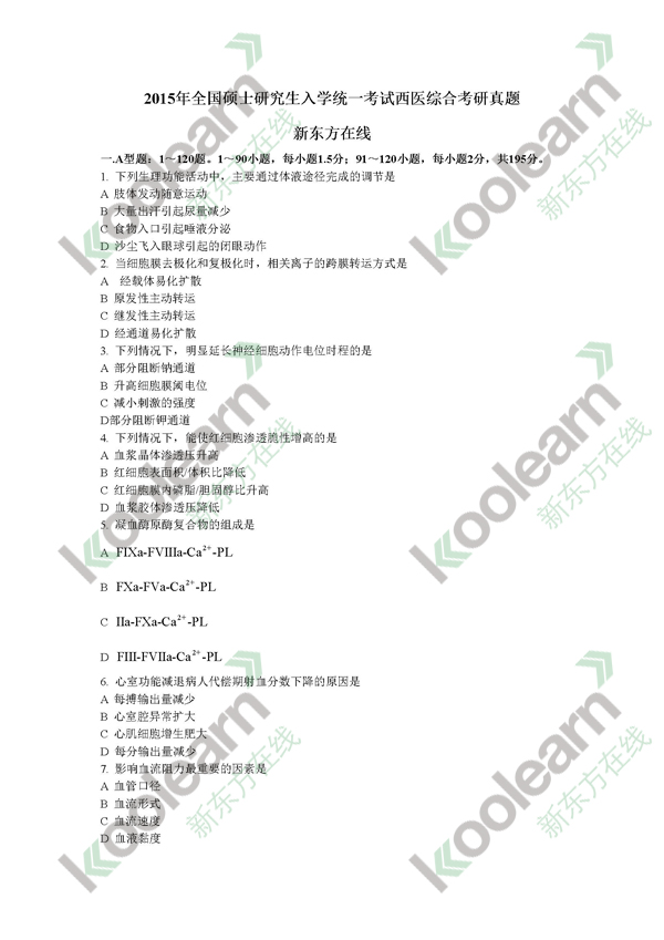 来源 : 网络 12月28日 18:32 关键字 : 2015西医综合考研真题 2015西医综合考研