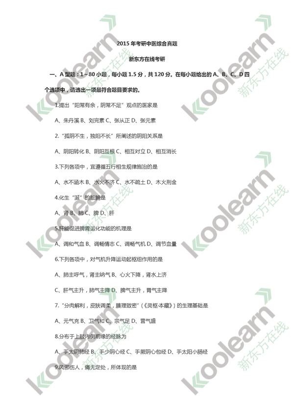 来源 : 网络 12月28日 16:47 关键字 : 2015中医综合考研真题及答案