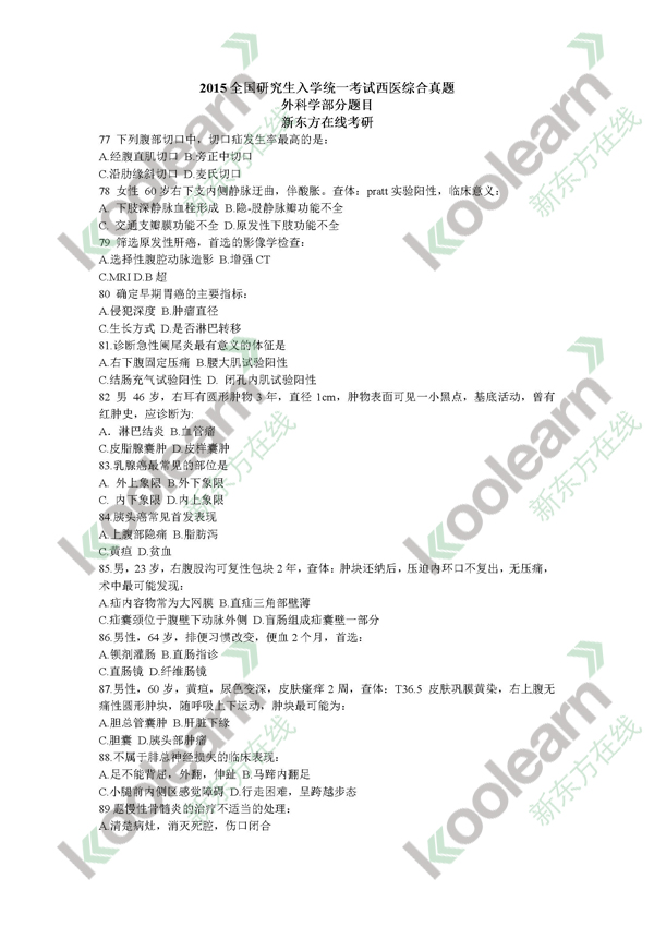 来源 : 网络 12月28日 16:08 关键字 : 2015西医综合考研真题及答案