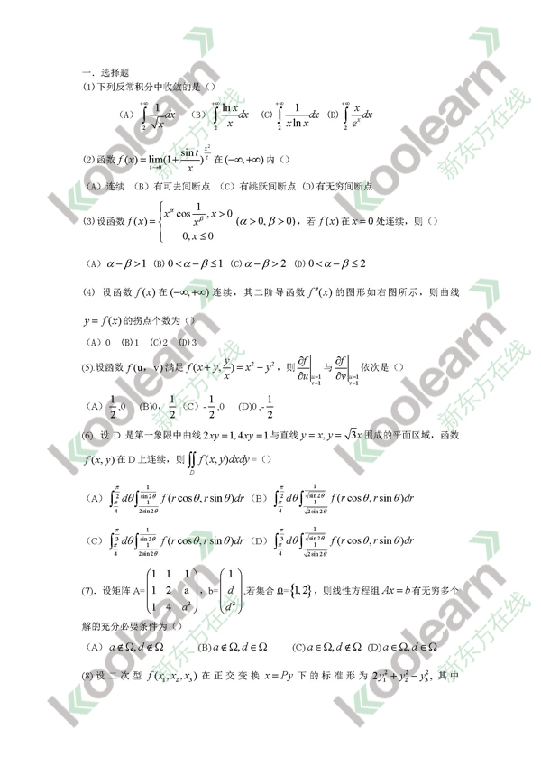 来源 : 网络 12月28日 14:37 关键字 : 2015考研数学三真题及答案