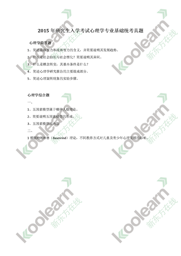 来源 : 网络 12月28日 13:11 关键字 : 2015心理学考研真题及答案