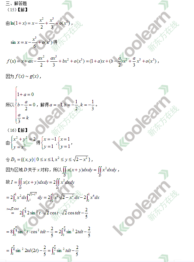 来源 : 网络 12月28日 12:54 关键字 : 2015考研数学真题及答案