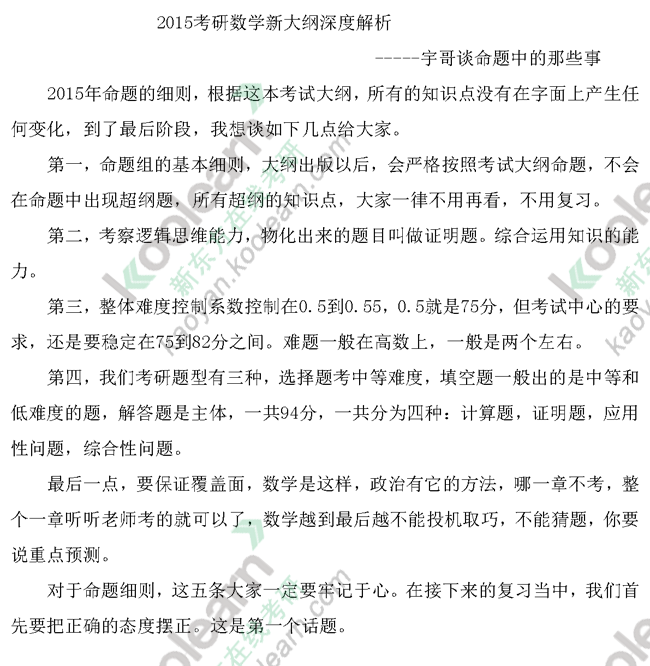2015考研大纲已发布,新东方在线考研频道特邀请张宇老师为考生解读2015考研数学大纲,希望对2015考研考生备考有所帮助,更多2015考研大纲下载请关注新东方在线2015考研大纲解析专题。201...