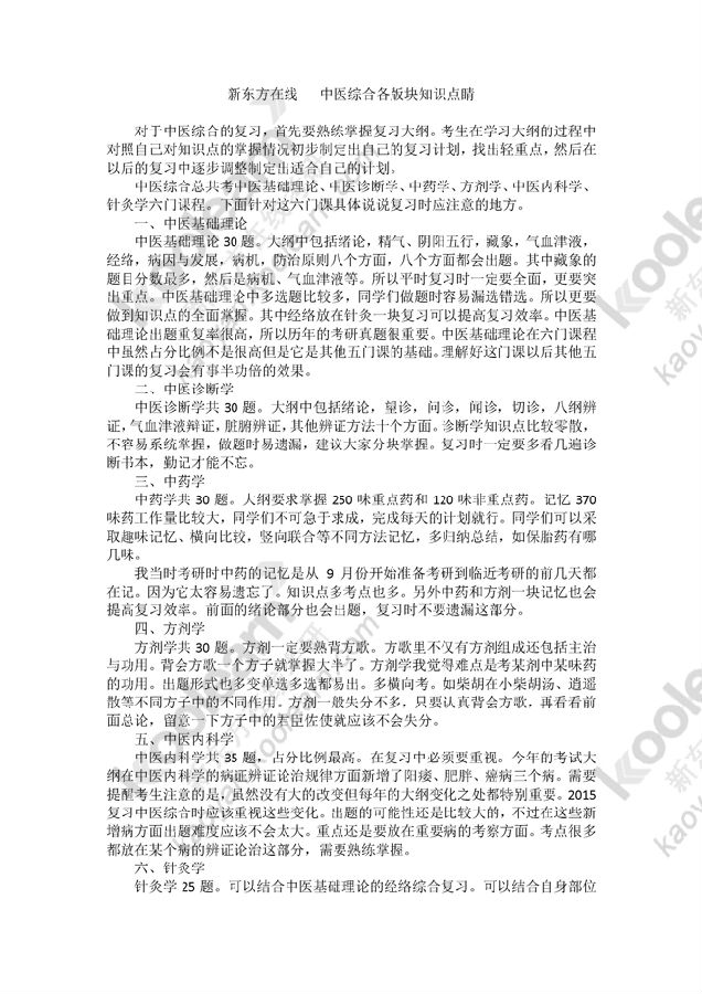 来源 : 网络 09月13日 14:43 关键字 : 2015中医综合考研大纲解析