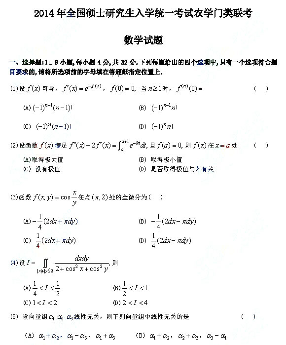 来源 : 新东方在线编辑整理 09月12日 14:46 关键字 : 2014考研数学四大纲 考研 考研数学 考研数农