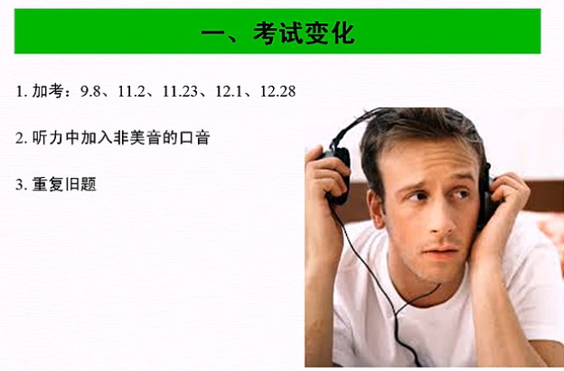 一、2013年托福考试变化: 1.托福加考5场;2.托福听力加入非美音的口音;3.重复旧题[page] 一、2013年托福考试变化:红色为新题[page] 二、2013年托福考情分析:CONVERSATION[p...
