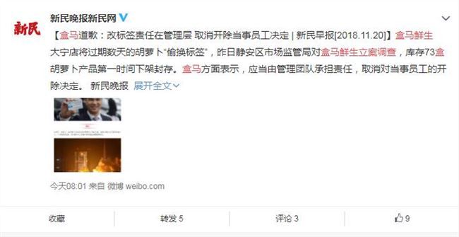 来源 : 搜狐 11月20日 16:57 关键字 : 盒马鲜生立案调查