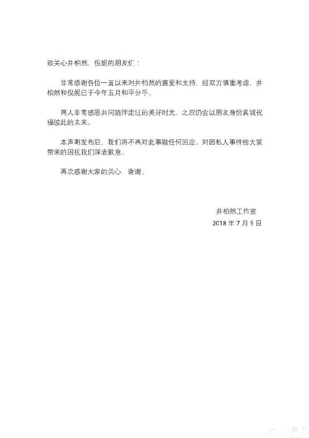 来源 : 凤凰娱乐 07月05日 15:16 关键字 : 井柏然倪妮分手