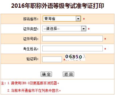 2016青海职称英语准考证打印最新消息:青海省已经显示在中国人事考试网2016职称英语准考证打印入口页面上,请各位青海考区的考生在规定时间内,及时打印准考证。 根据青海2016年职称...